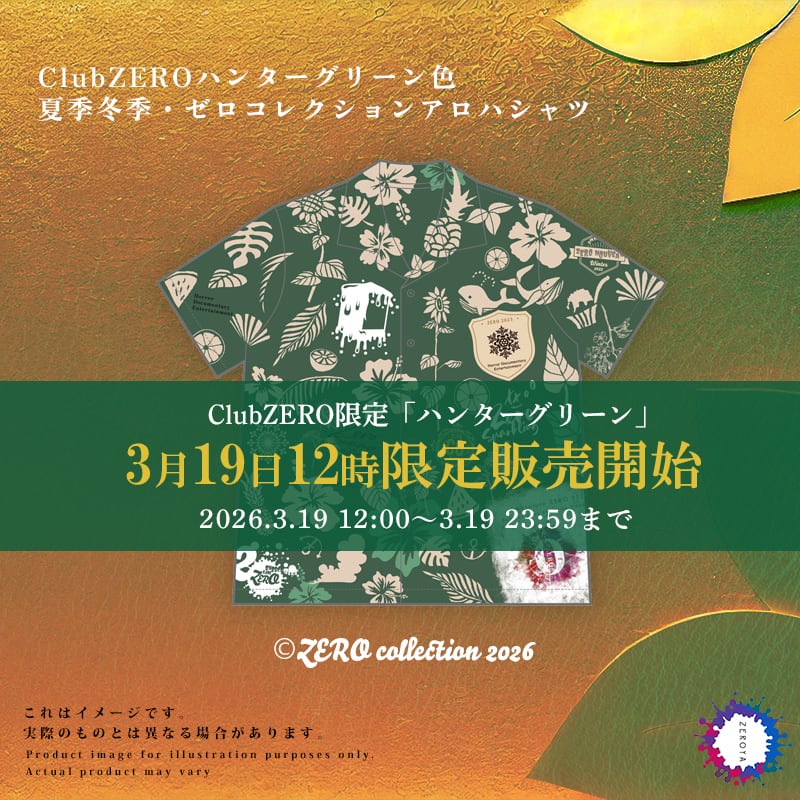 昨年2025年に超大好評だった「ゼロアロハシャツ」の第二弾が販売決定!前回のゼロシリーズの全てのロゴを引っ提げたアロハシャツはもう二度と販売のないレベルの貴重な一品だったにも関わらず今回も超貴重なアロハシャツが堂々登場!!過去の夏季と冬季(2020年~2025年)のゼログッズのキーデザインの全てを引っ提げた「ゼロ・コレクション・アロハシャツ」だ!本来、夏に出会うことが無かった冬デザインの合流。これほどプレミアムなことがあるだろうか。最高のゼロの夏に添えて楽しんで欲しい。この想いをチェックしてみて欲しい。
