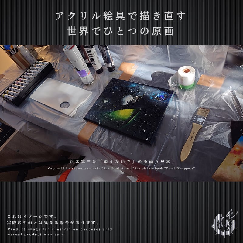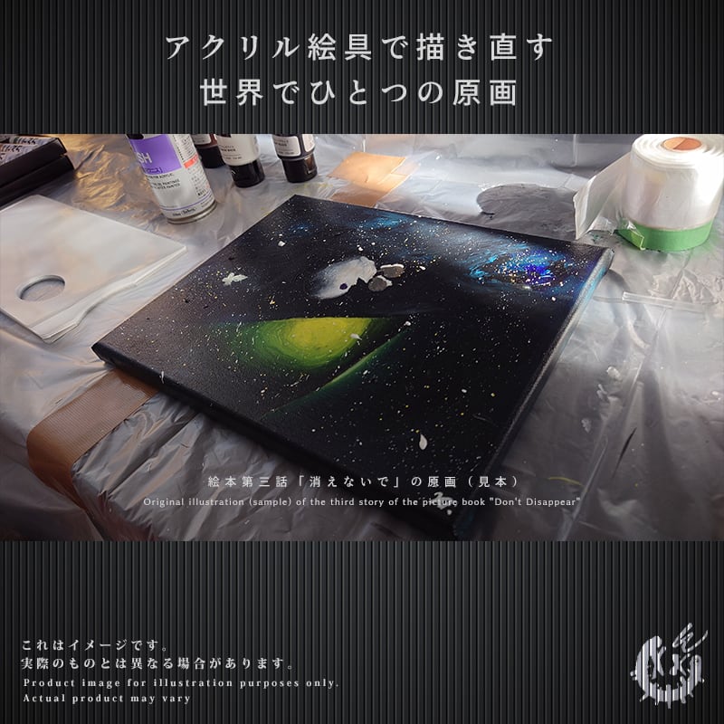 キャンバス(種類・サイズは問わない)を全て購入して頂いた方には、物語に登場する「レジンペンダント(予定)」をもれなくお贈り致します。このレジンペンダントは、二宮の完全手作りとなっており過去に何度も販売しておりますが数分で完売する超レアのアイテムとなっております。